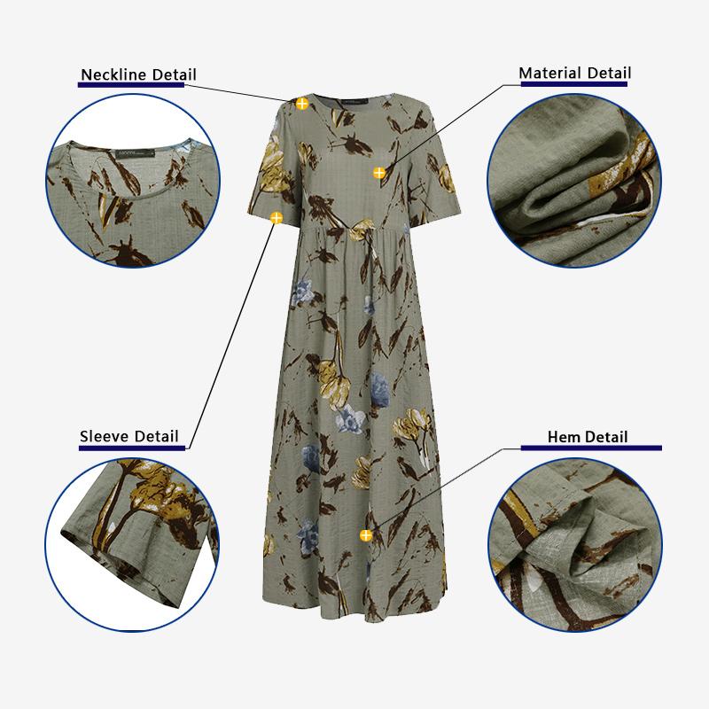 Women's Vintage Print Casual Summer Short Sleeve O-neck Thin Dresses