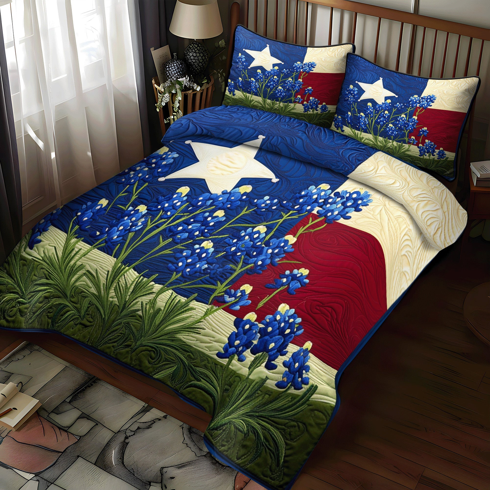 Bluebonnet Fields 3-Piece Quilted Bedding Set NCU0NT5496